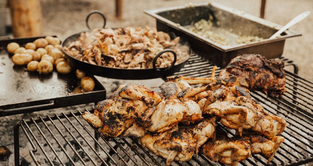 Our fires will be going, showing you the magic of our fire cooking and you will be able to taste some of the food coming off the fires as well as our canapés and have a cheeky glass of mulled wine too
